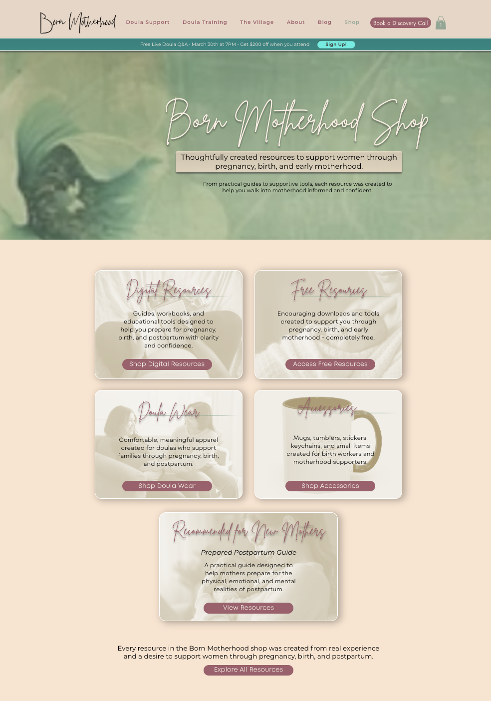 Born Motherhood had grown into a more expansive business than its website could clearly support. The work was not just to make it prettier — it was to create a structure that matched the depth of the brand and helped people move through its offers with less confusion.